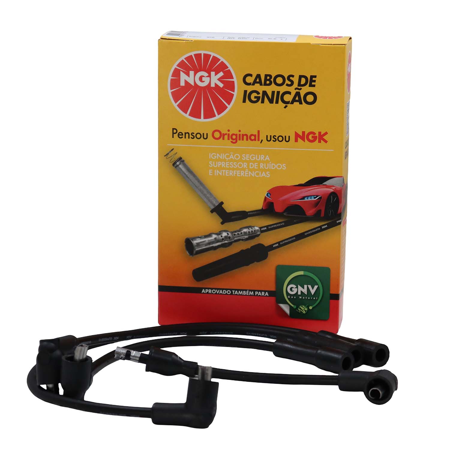Cabos de silicone de 7mm com filamento de níquel-cromo com alta flexibilidade e alta capacidade de isolação evitando assim fuga de corrente com durabilidade superior. Os cabos NGK montados com supressores de ruído, possuem blindagem metálica permitindo maior dissipação térmica permitindo centelhas de melhor qualidade na vela.