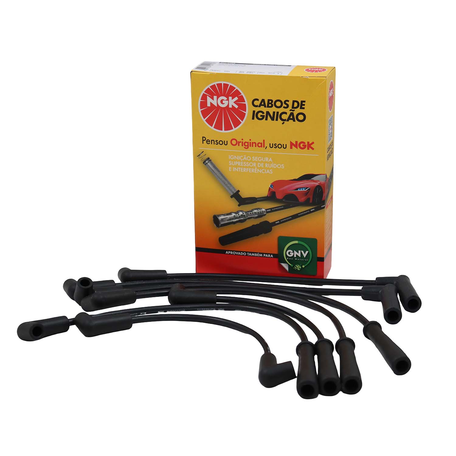 Cabos de silicone de 7mm com filamento de níquel-cromo com alta flexibilidade e alta capacidade de isolação evitando assim fuga de corrente com durabilidade superior. Os cabos NGK montados com supressores de ruído, possuem blindagem metálica permitindo maior dissipação térmica permitindo centelhas de melhor qualidade na vela.