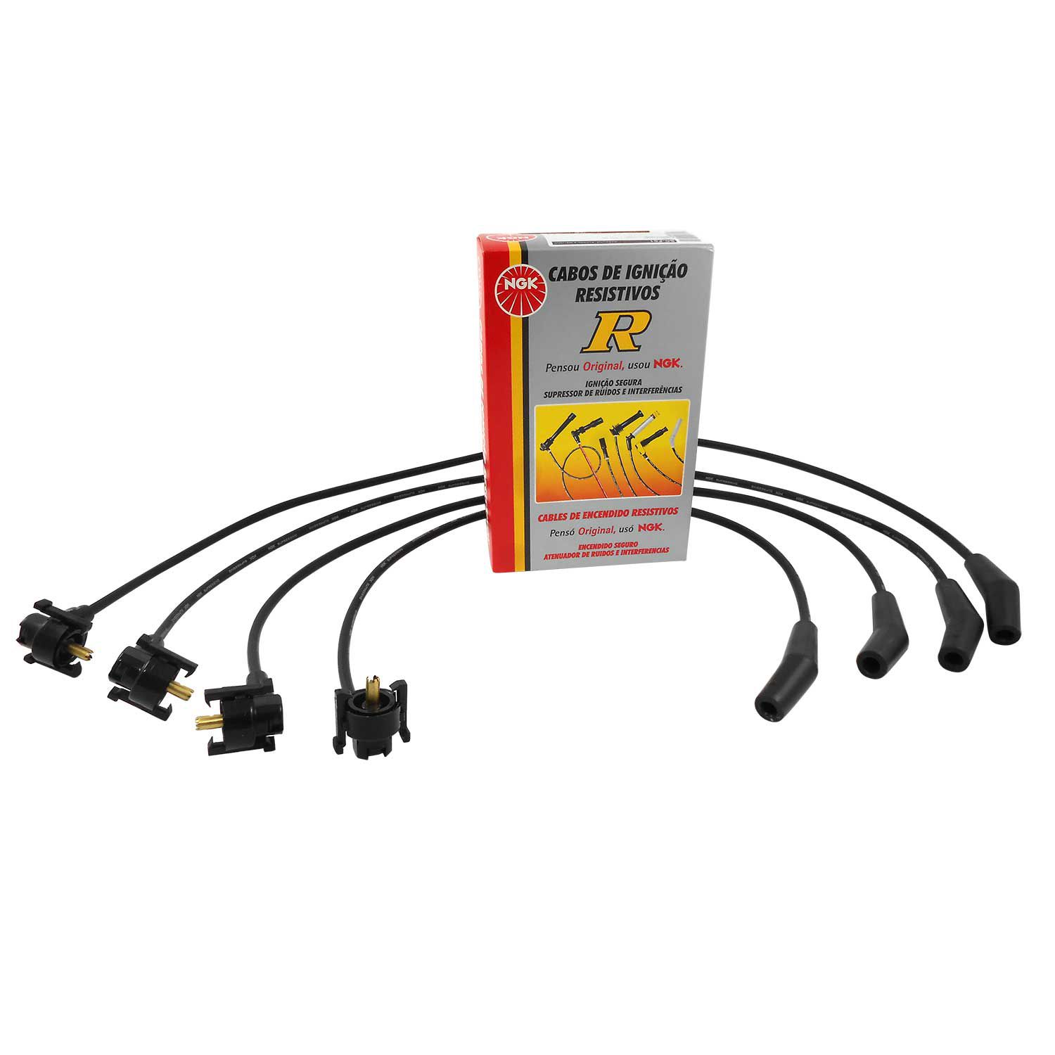 Cabos de silicone de 7mm com filamento de níquel-cromo com alta flexibilidade e alta capacidade de isolação evitando assim fuga de corrente com durabilidade superior. Os cabos NGK montados com supressores de ruído, possuem blindagem metálica permitindo maior dissipação térmica permitindo centelhas de melhor qualidade na vela.