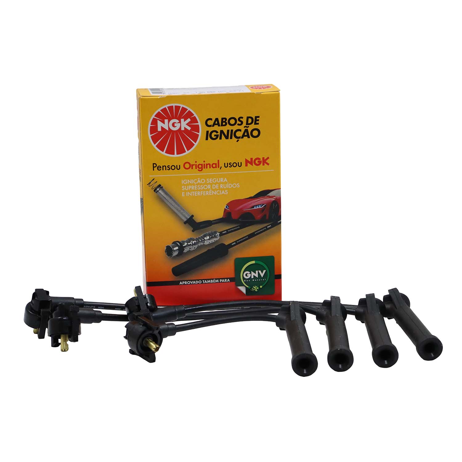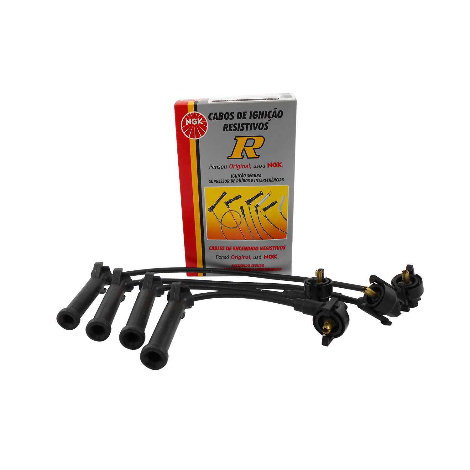 Cabos de silicone de 7mm com filamento de níquel-cromo com alta flexibilidade e alta capacidade de isolação evitando assim fuga de corrente com durabilidade superior. Os cabos NGK montados com supressores de ruído, possuem blindagem metálica permitindo maior dissipação térmica permitindo centelhas de melhor qualidade na vela.