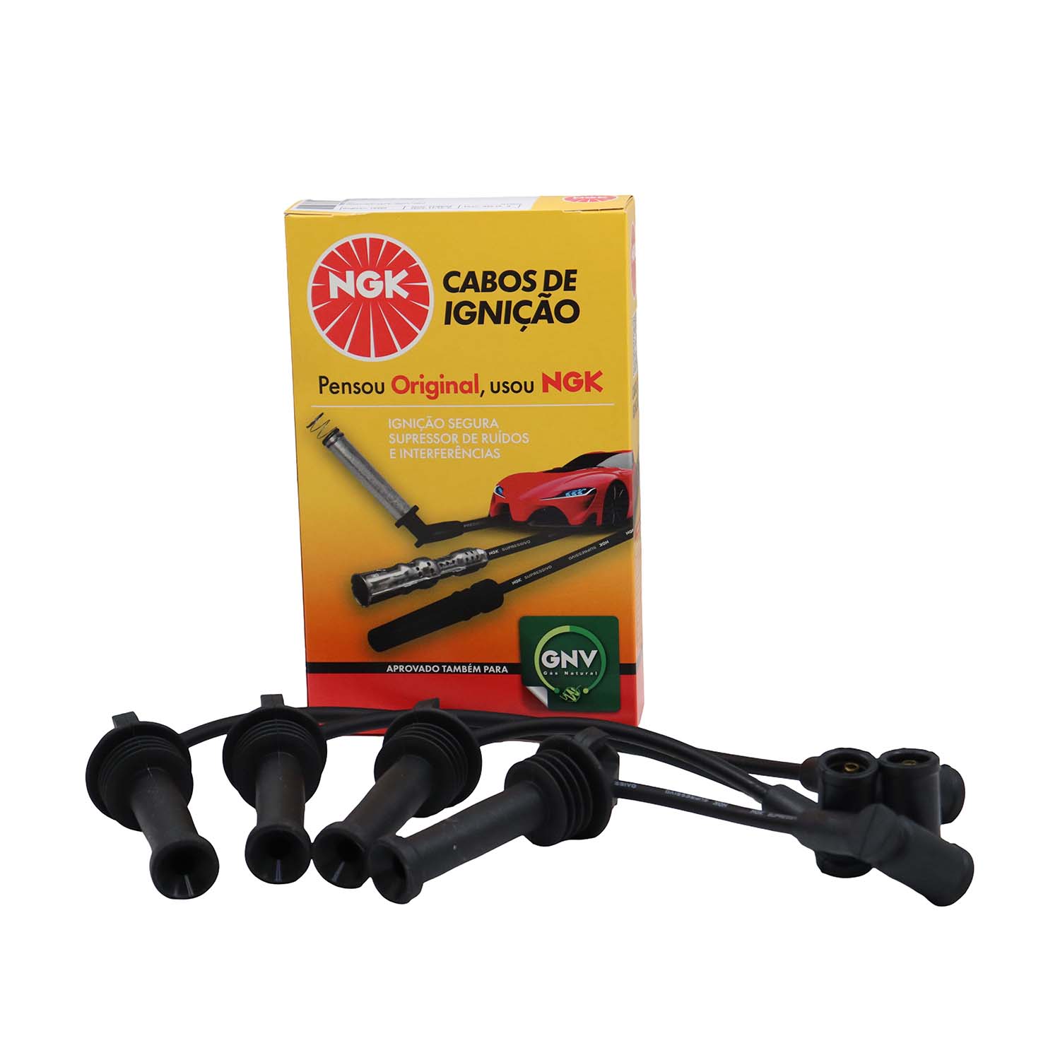 Cabos de silicone de 7mm com filamento de níquel-cromo com alta flexibilidade e alta capacidade de isolação evitando assim fuga de corrente com durabilidade superior. Os cabos NGK montados com supressores de ruído, possuem blindagem metálica permitindo maior dissipação térmica permitindo centelhas de melhor qualidade na vela.