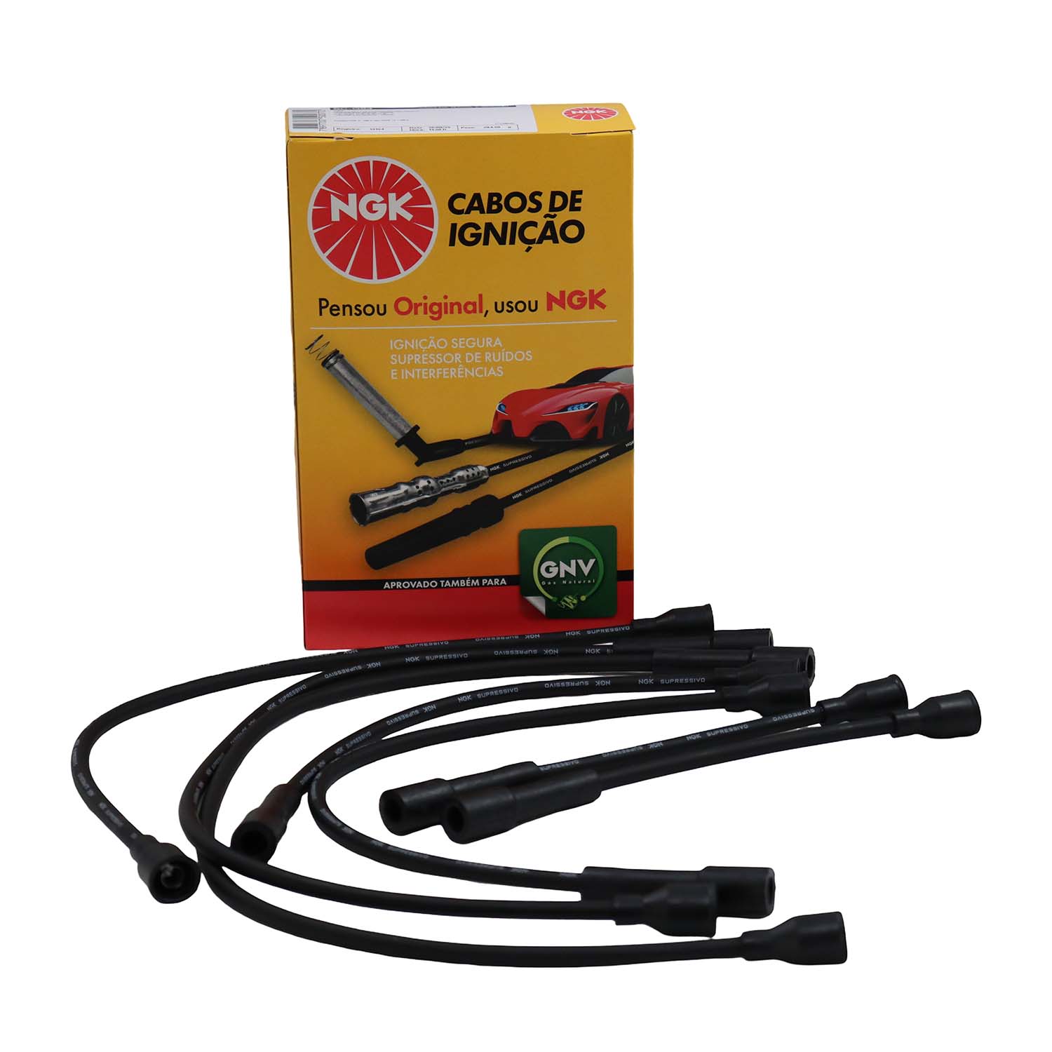 Cabos de silicone de 7mm com filamento de níquel-cromo com alta flexibilidade e alta capacidade de isolação evitando assim fuga de corrente com durabilidade superior. Os cabos NGK montados com supressores de ruído, possuem blindagem metálica permitindo maior dissipação térmica permitindo centelhas de melhor qualidade na vela.