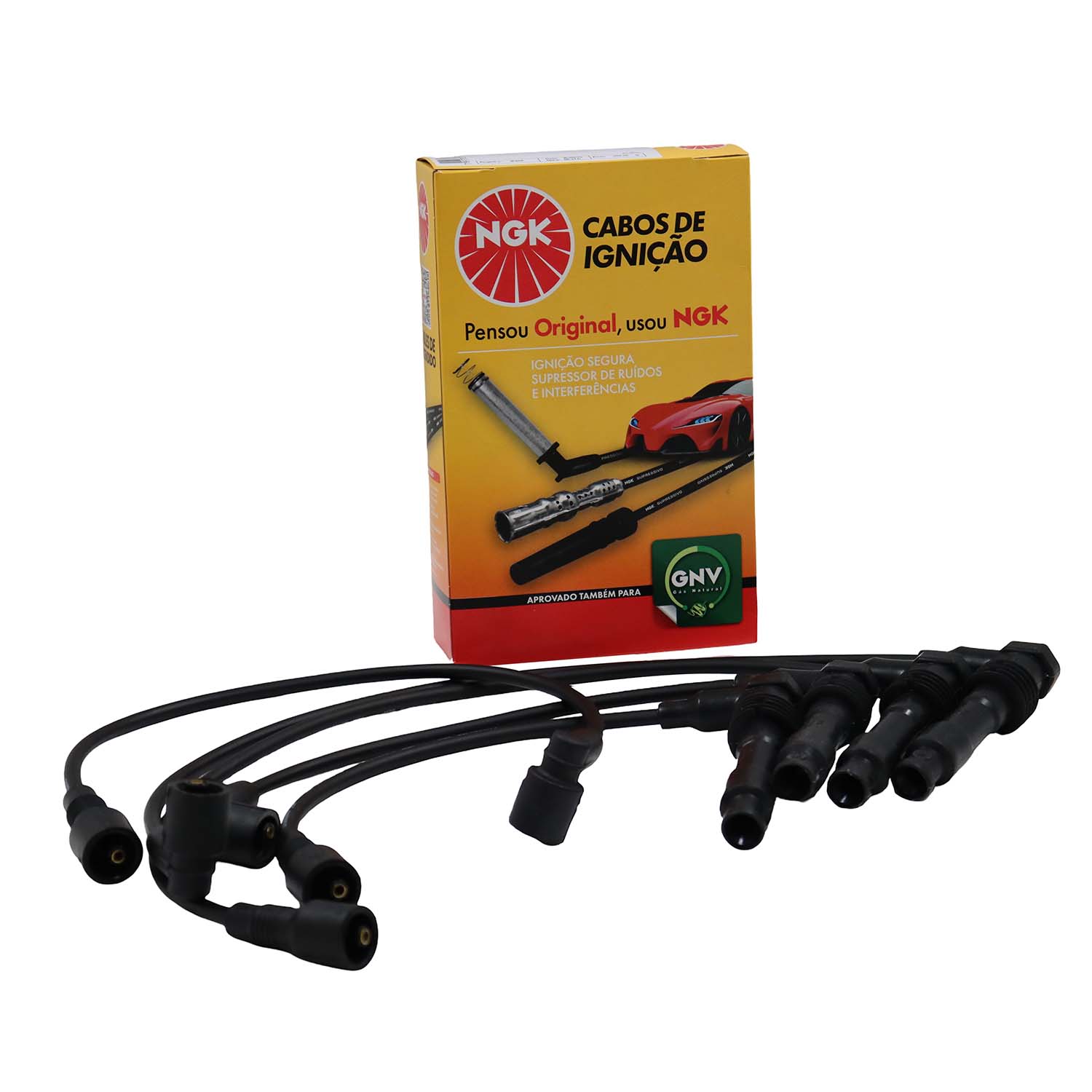 Cabos de silicone de 7mm com filamento de níquel-cromo com alta flexibilidade e alta capacidade de isolação evitando assim fuga de corrente com durabilidade superior. Os cabos NGK montados com supressores de ruído, possuem blindagem metálica permitindo maior dissipação térmica permitindo centelhas de melhor qualidade na vela.