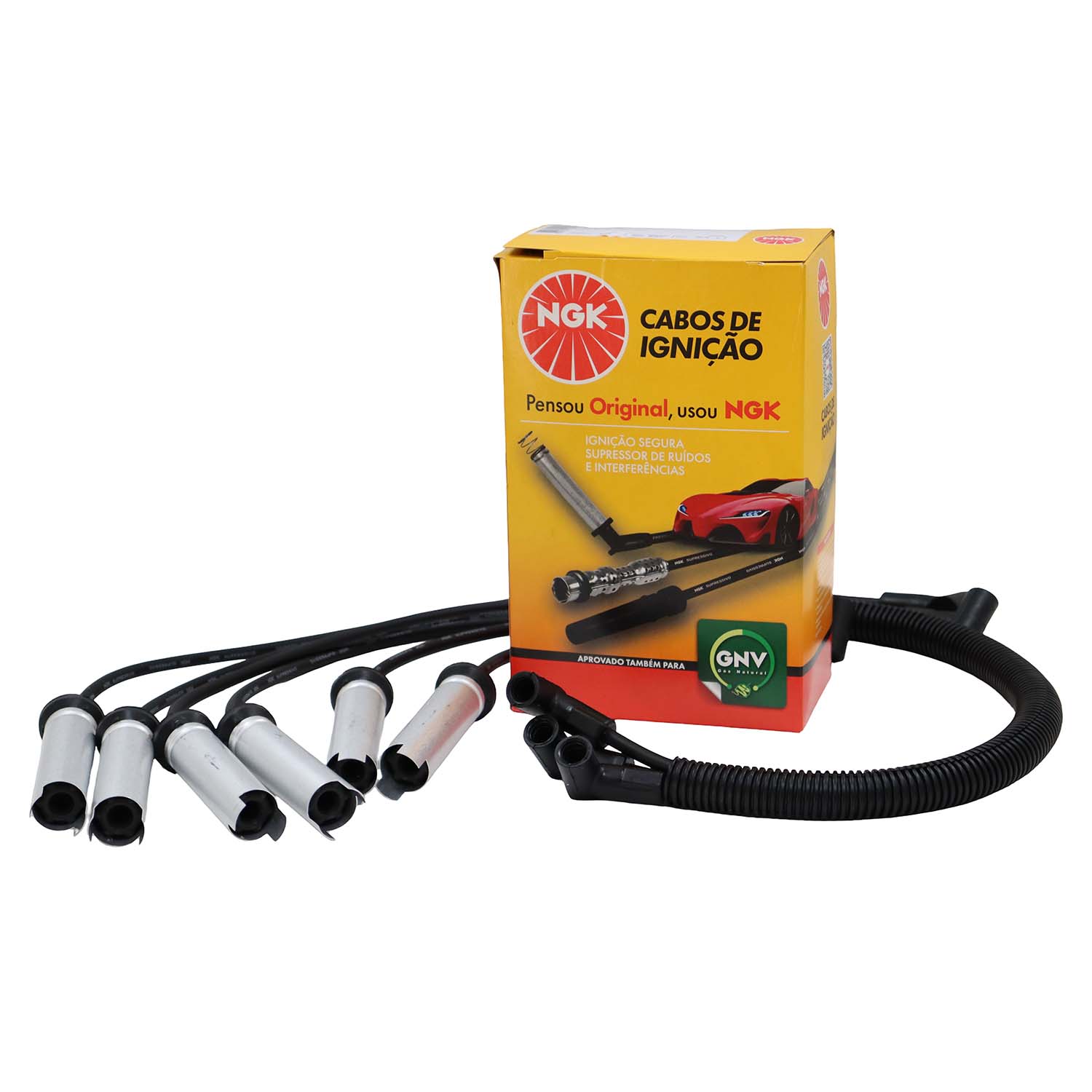 Cabos de silicone de 7mm com filamento de níquel-cromo com alta flexibilidade e alta capacidade de isolação evitando assim fuga de corrente com durabilidade superior. Os cabos NGK montados com supressores de ruído, possuem blindagem metálica permitindo maior dissipação térmica permitindo centelhas de melhor qualidade na vela.
