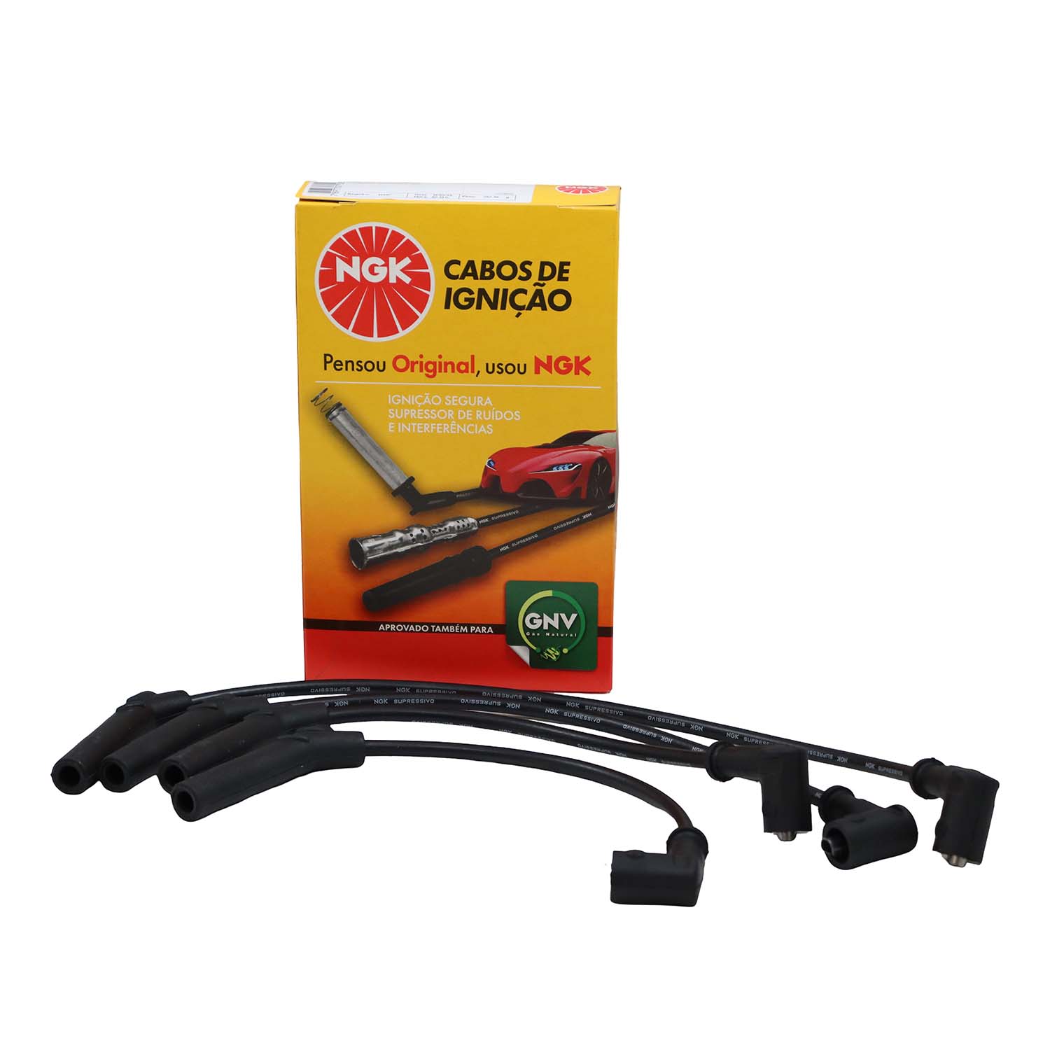 Cabos de silicone de 7mm com filamento de níquel-cromo com alta flexibilidade e alta capacidade de isolação evitando assim fuga de corrente com durabilidade superior. Os cabos NGK montados com supressores de ruído, possuem blindagem metálica permitindo maior dissipação térmica permitindo centelhas de melhor qualidade na vela.