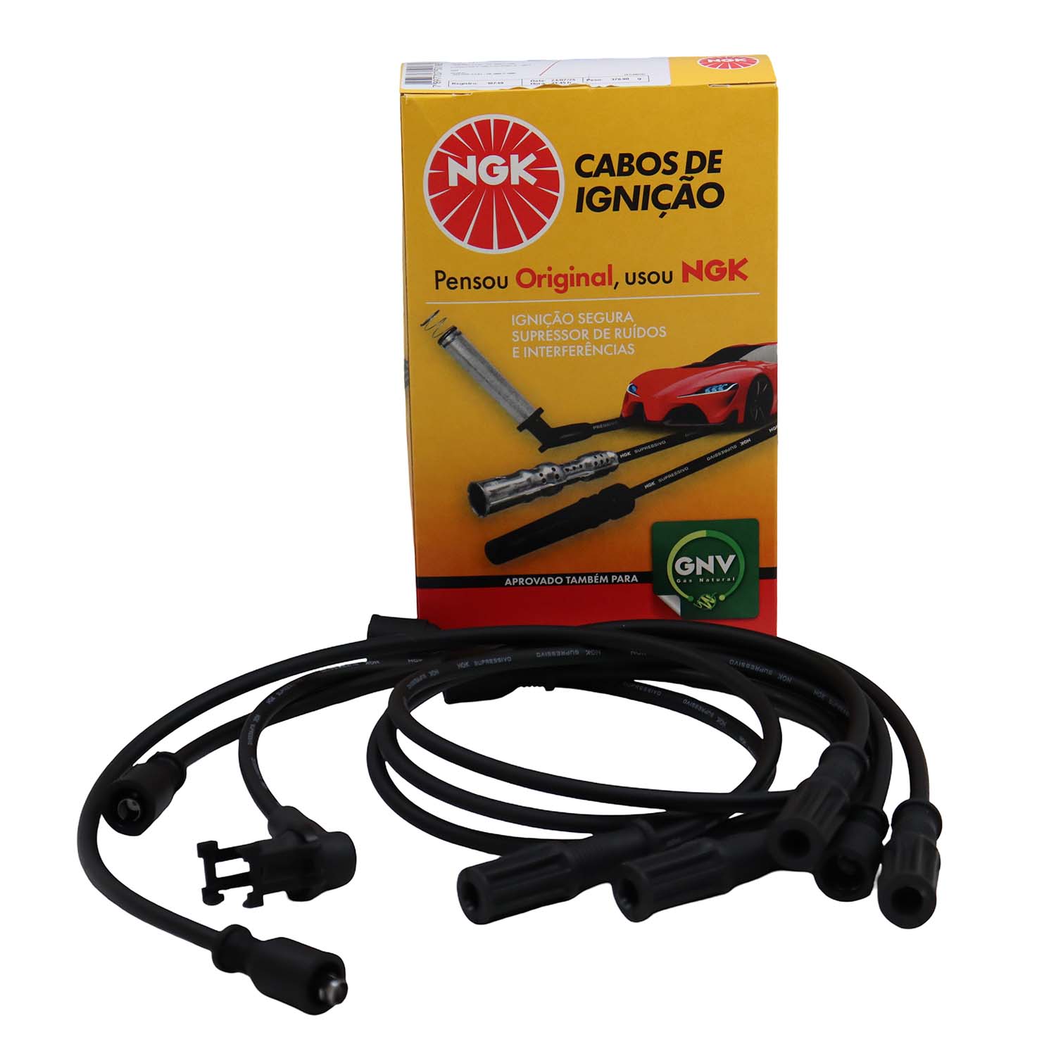 Cabos de silicone de 7mm com filamento de níquel-cromo com alta flexibilidade e alta capacidade de isolação evitando assim fuga de corrente com durabilidade superior. Os cabos NGK montados com supressores de ruído, possuem blindagem metálica permitindo maior dissipação térmica permitindo centelhas de melhor qualidade na vela.