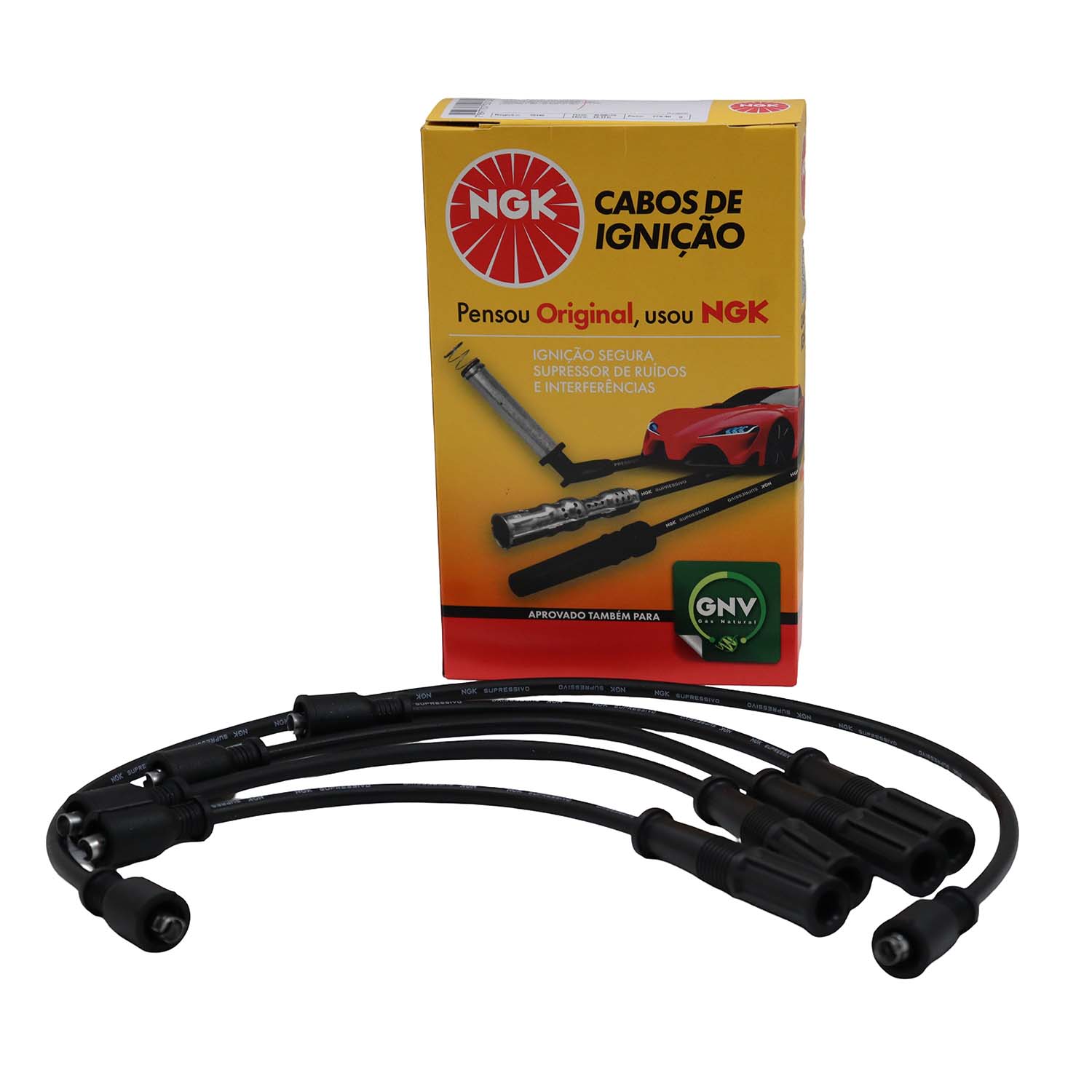 Cabos de silicone de 7mm com filamento de níquel-cromo com alta flexibilidade e alta capacidade de isolação evitando assim fuga de corrente com durabilidade superior. Os cabos NGK montados com supressores de ruído, possuem blindagem metálica permitindo maior dissipação térmica permitindo centelhas de melhor qualidade na vela.