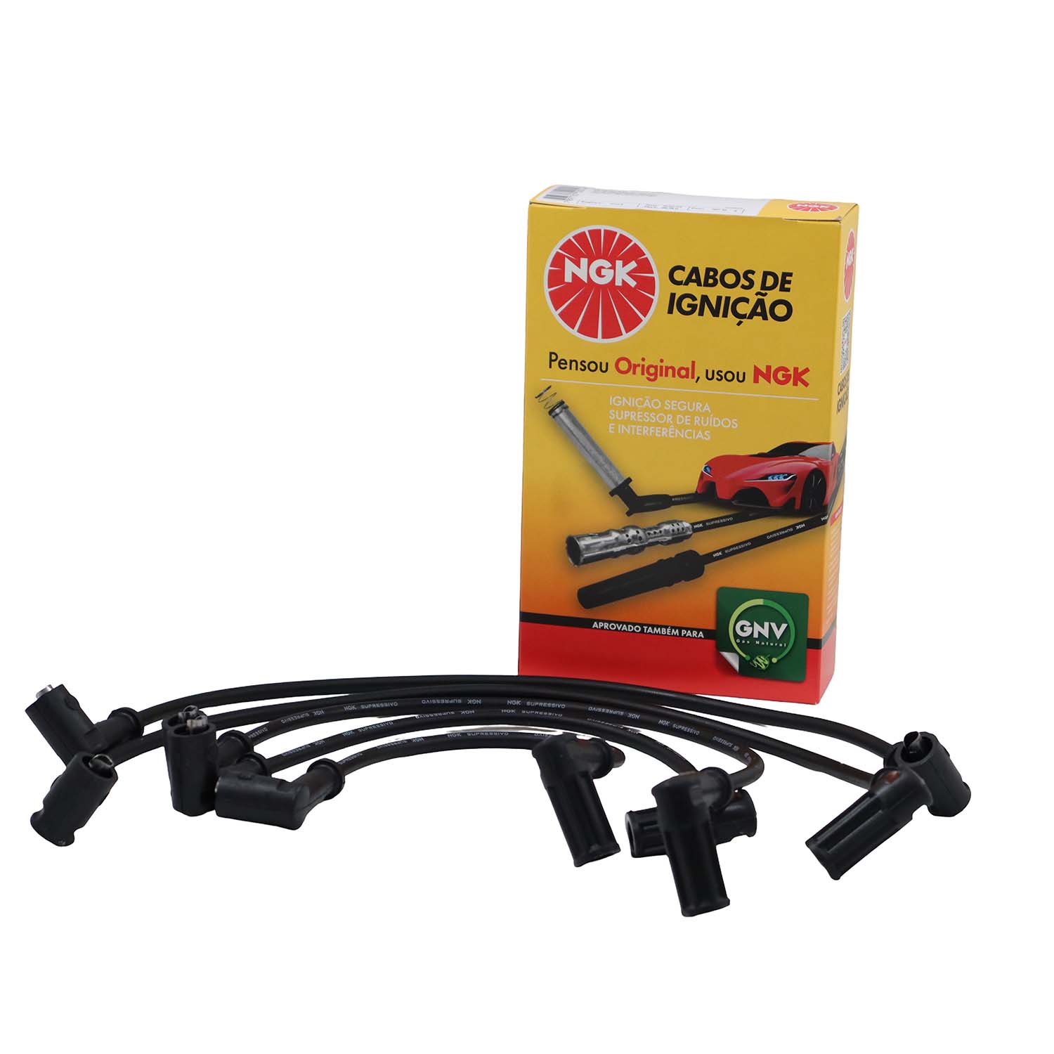 Cabos de silicone de 7mm com filamento de níquel-cromo com alta flexibilidade e alta capacidade de isolação evitando assim fuga de corrente com durabilidade superior. Os cabos NGK montados com supressores de ruído, possuem blindagem metálica permitindo maior dissipação térmica permitindo centelhas de melhor qualidade na vela.