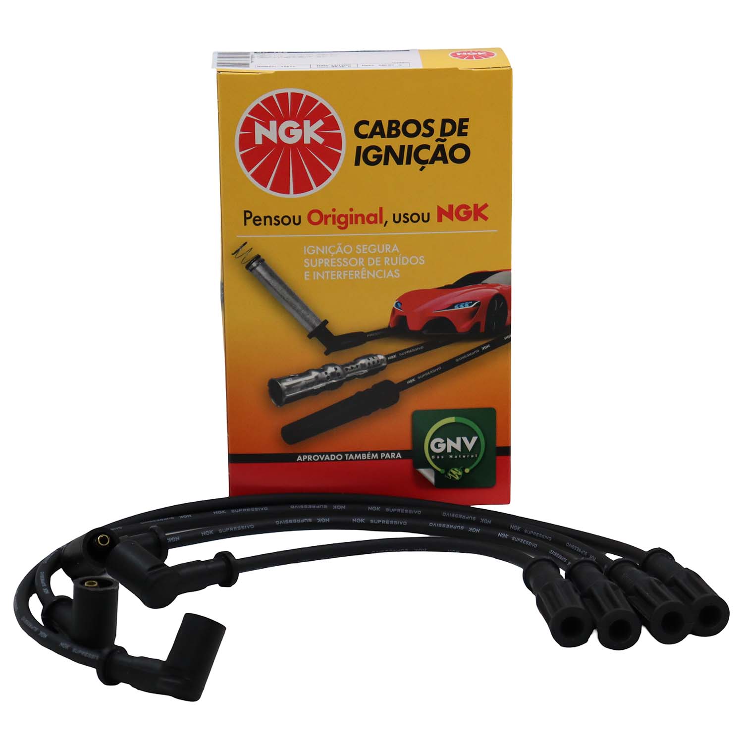 Cabos de silicone de 7mm com filamento de níquel-cromo com alta flexibilidade e alta capacidade de isolação evitando assim fuga de corrente com durabilidade superior. Os cabos NGK montados com supressores de ruído, possuem blindagem metálica permitindo maior dissipação térmica permitindo centelhas de melhor qualidade na vela.