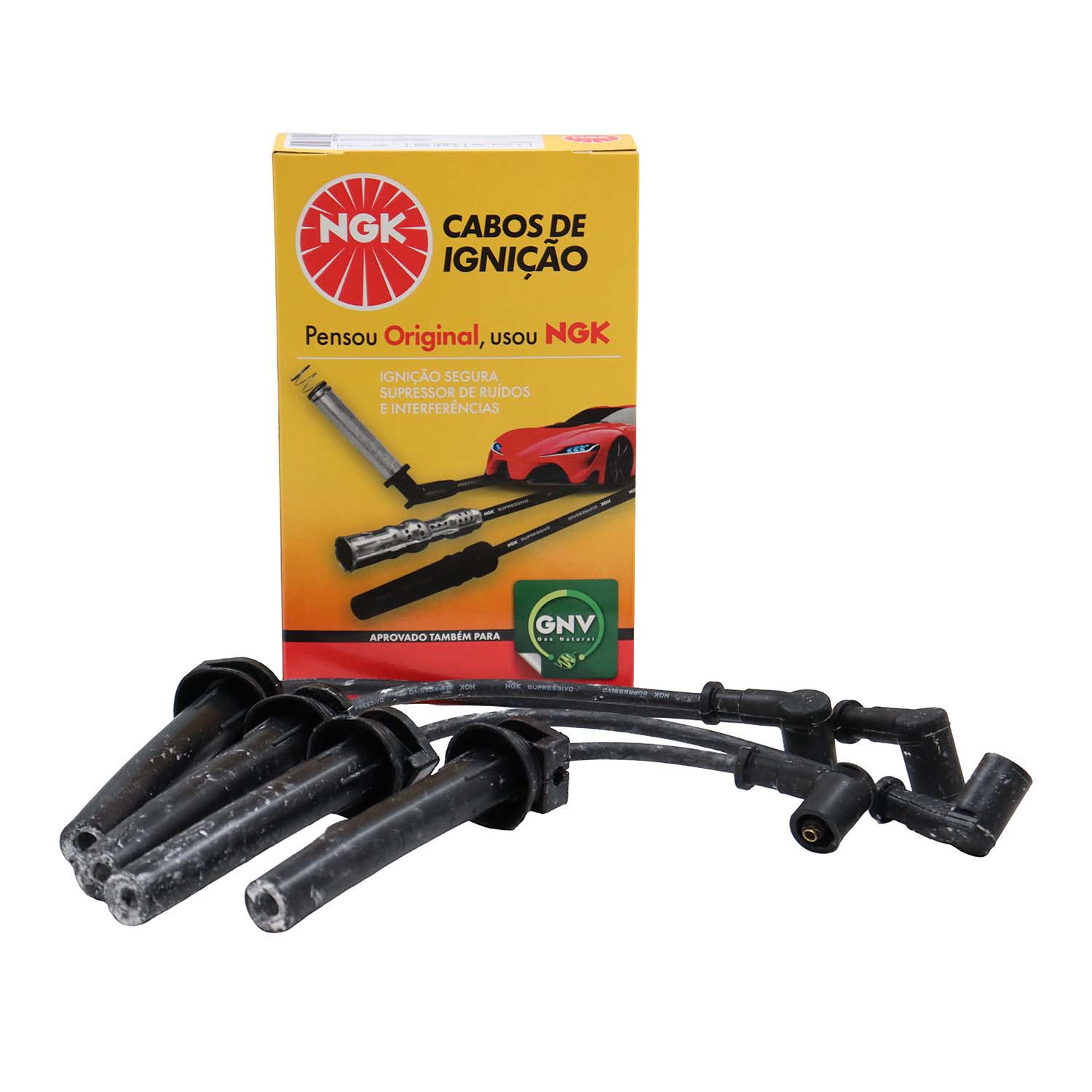 Cabos de silicone de 7mm com filamento de níquel-cromo com alta flexibilidade e alta capacidade de isolação evitando assim fuga de corrente com durabilidade superior. Os cabos NGK montados com supressores de ruído, possuem blindagem metálica permitindo maior dissipação térmica permitindo centelhas de melhor qualidade na vela.