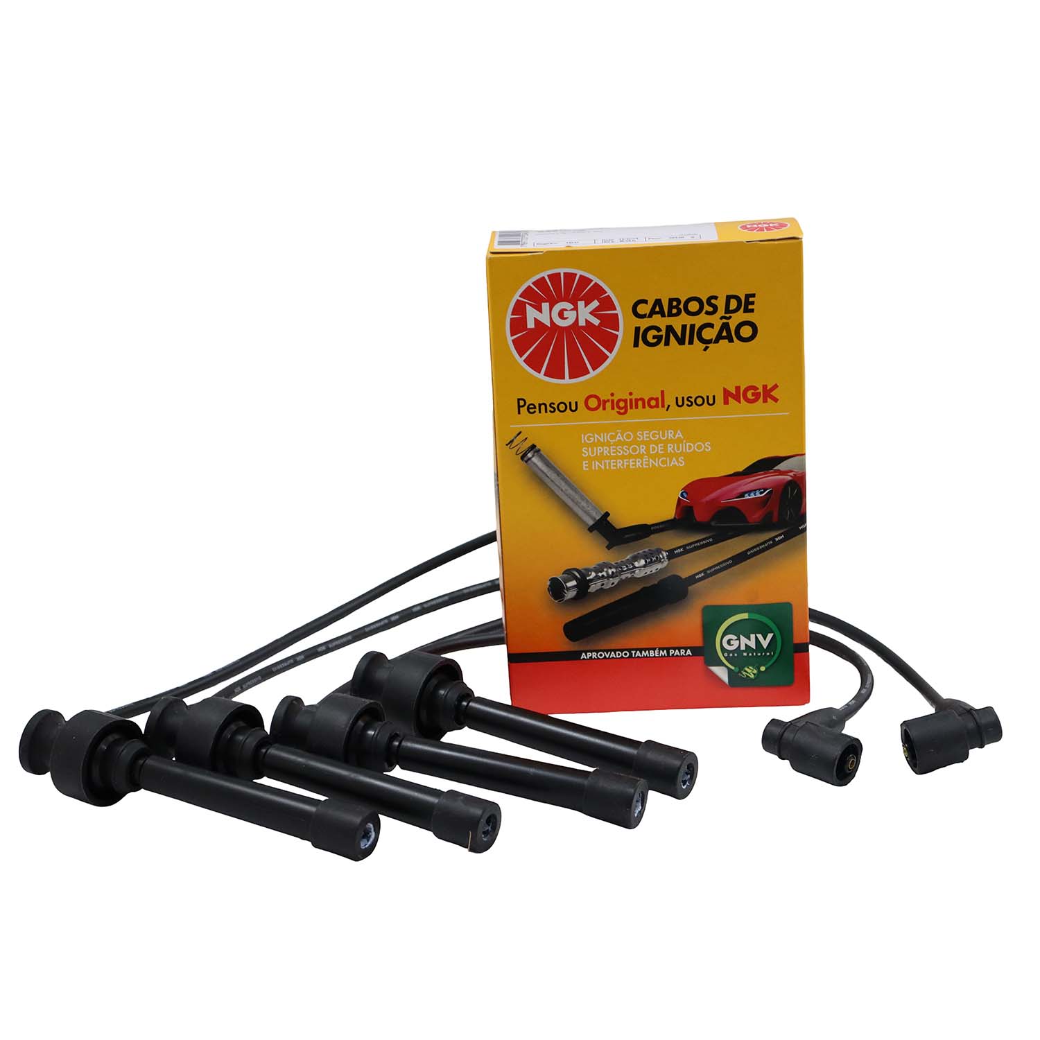 Cabos de silicone de 7mm com filamento de níquel-cromo com alta flexibilidade e alta capacidade de isolação evitando assim fuga de corrente com durabilidade superior. Os cabos NGK montados com supressores de ruído, possuem blindagem metálica permitindo maior dissipação térmica permitindo centelhas de melhor qualidade na vela.