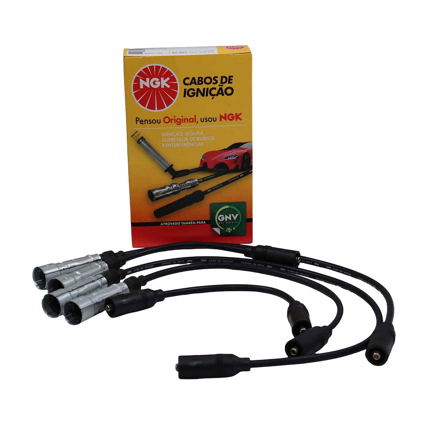 Cabos de silicone de 7mm com filamento de níquel-cromo com alta flexibilidade e alta capacidade de isolação evitando assim fuga de corrente com durabilidade superior. Os cabos NGK montados com supressores de ruído, possuem blindagem metálica permitindo maior dissipação térmica permitindo centelhas de melhor qualidade na vela.