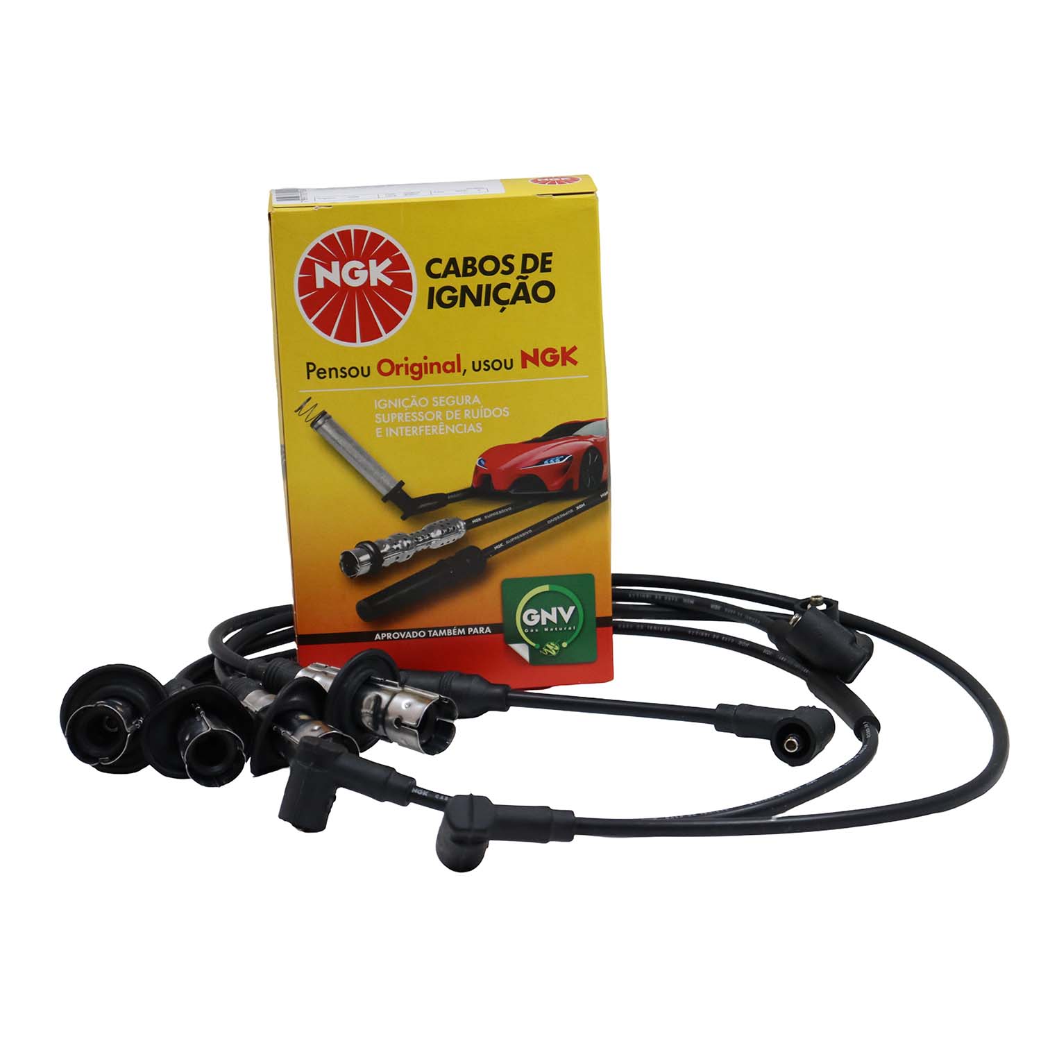 Cabos de silicone de 7mm com filamento de níquel-cromo com alta flexibilidade e alta capacidade de isolação evitando assim fuga de corrente com durabilidade superior. Os cabos NGK montados com supressores de ruído, possuem blindagem metálica permitindo maior dissipação térmica permitindo centelhas de melhor qualidade na vela.