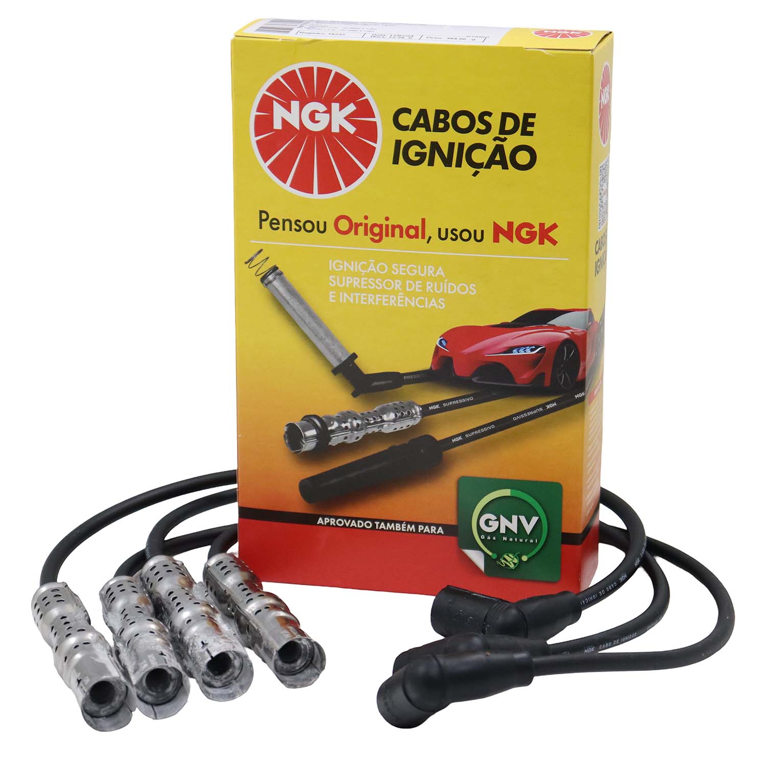 Cabos de silicone de 7mm com filamento de níquel-cromo com alta flexibilidade e alta capacidade de isolação evitando assim fuga de corrente com durabilidade superior. Os cabos NGK montados com supressores de ruído, possuem blindagem metálica permitindo maior dissipação térmica permitindo centelhas de melhor qualidade na vela.