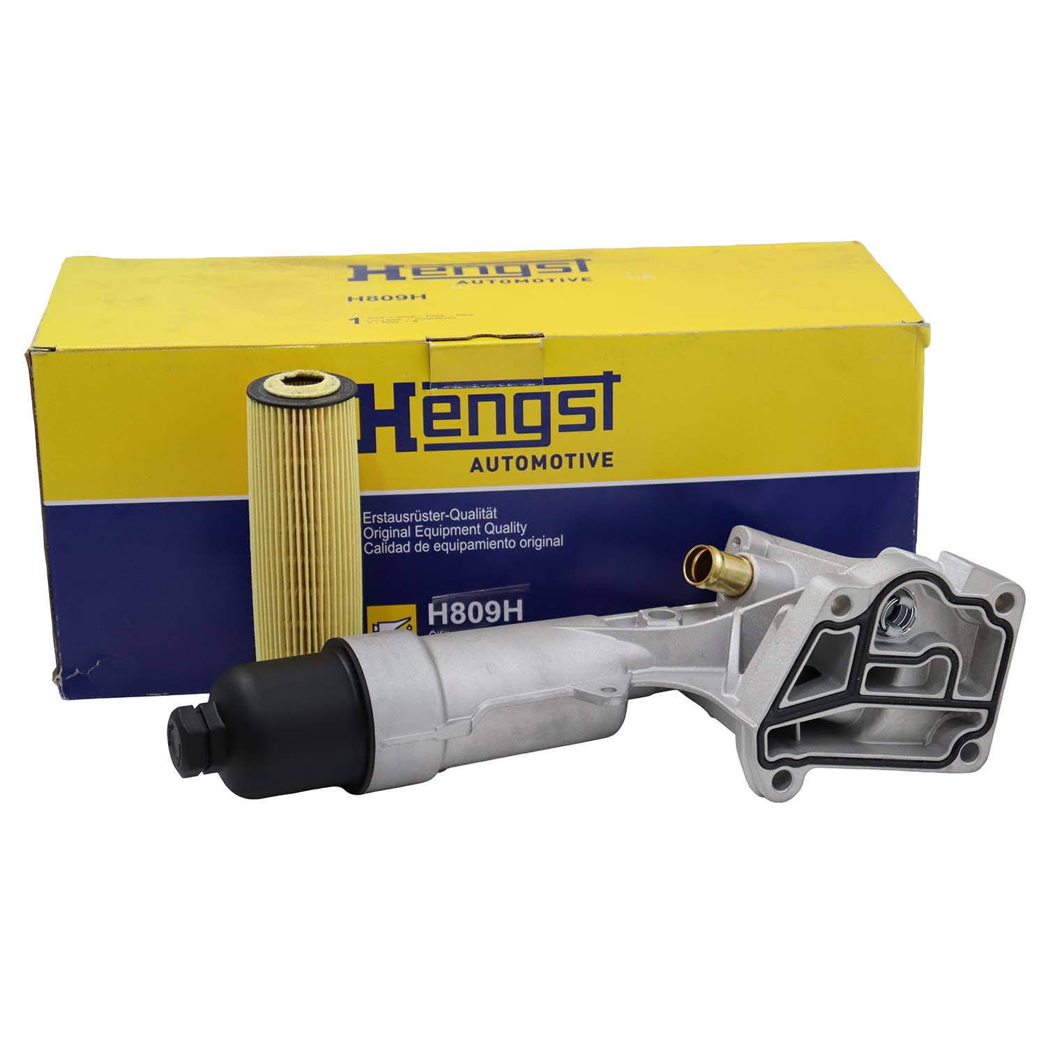 Módulo do Filtro de Óleo Hengst, esse módulo contempla o elemento filtrante, a tampa da caixa do filtro de óleo, trocador de calor e juntas, esse kit possibilita a substituição de todo conjunto de forma rápida e segura, evitando vazamentos e assegurando a vida útil do motor e eliminando riscos de contaminação do óleo pelo trocador de calor.